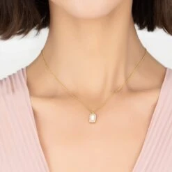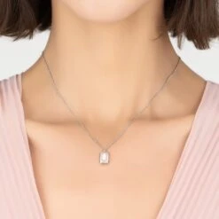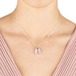 Latelita Beatrice Oval Gemstone Pendant Necklace Silver Rose Quartz