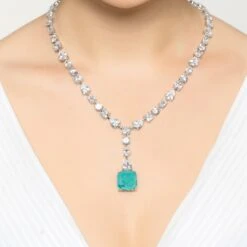 Latelita Elizabeth Colombian Emerald Statement Necklace Silver