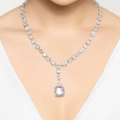 Latelita Alexandra Rectangle Gemstone Necklace Silver Morganite