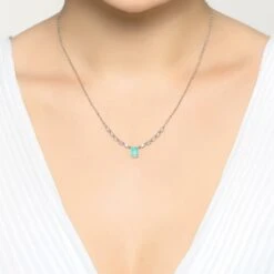 Latelita Alexandra Rectangle Gemstone Necklace Silver Paraiba Tourmaline