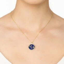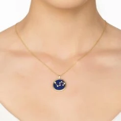 Latelita Zodiac Lapis Lazuli Gemstone Star Constellation Pendant Necklace Gold Aries