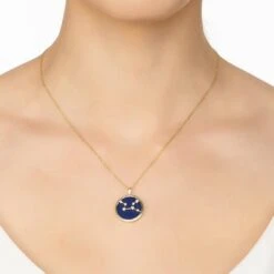 Latelita Zodiac Lapis Lazuli Gemstone Star Constellation Pendant Necklace Gold Cancer