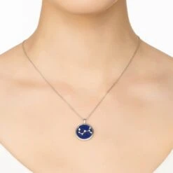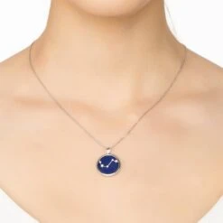 Latelita Zodiac Lapis Lazuli Gemstone Star Constellation Pendant Necklace Silver Aries